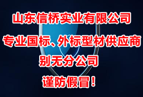 山東信橋?qū)崢I(yè)有限公司成立于1994年8月8日,是解決業(yè)內(nèi)高端國(guó)標(biāo)、外標(biāo)型材需求的現(xiàn)貨服務(wù)商,為型材的升級(jí)換代提供可能。公司一直秉承“誠(chéng)信為本,客戶(hù)至上”和“專(zhuān)人、專(zhuān)業(yè)、專(zhuān)心,做精、做細(xì)、做透”的經(jīng)營(yíng)理念,認(rèn)真貫徹落實(shí)“經(jīng)營(yíng)多元化、管理現(xiàn)代化、信橋品牌化、員工知識(shí)化”四大戰(zhàn)略,為廣大客戶(hù)提供優(yōu)質(zhì)的產(chǎn)品和服務(wù);