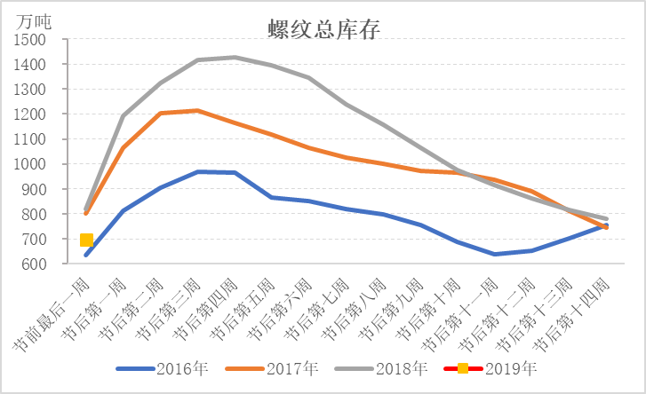 庫存低于去年同期,市場有望出現(xiàn)開門紅行情。根據(jù)Mysteel庫存統(tǒng)計(jì)數(shù)據(jù),2019年春節(jié)前最后一周五大品種庫存雖高于2016年,但低于2017、2018年,尤其是螺紋鋼,總庫存低于2018年同期122萬噸。在產(chǎn)量高于去年同期的情況下,需求是好于去年同期的。市場對節(jié)后需求依舊抱有較大期待。
