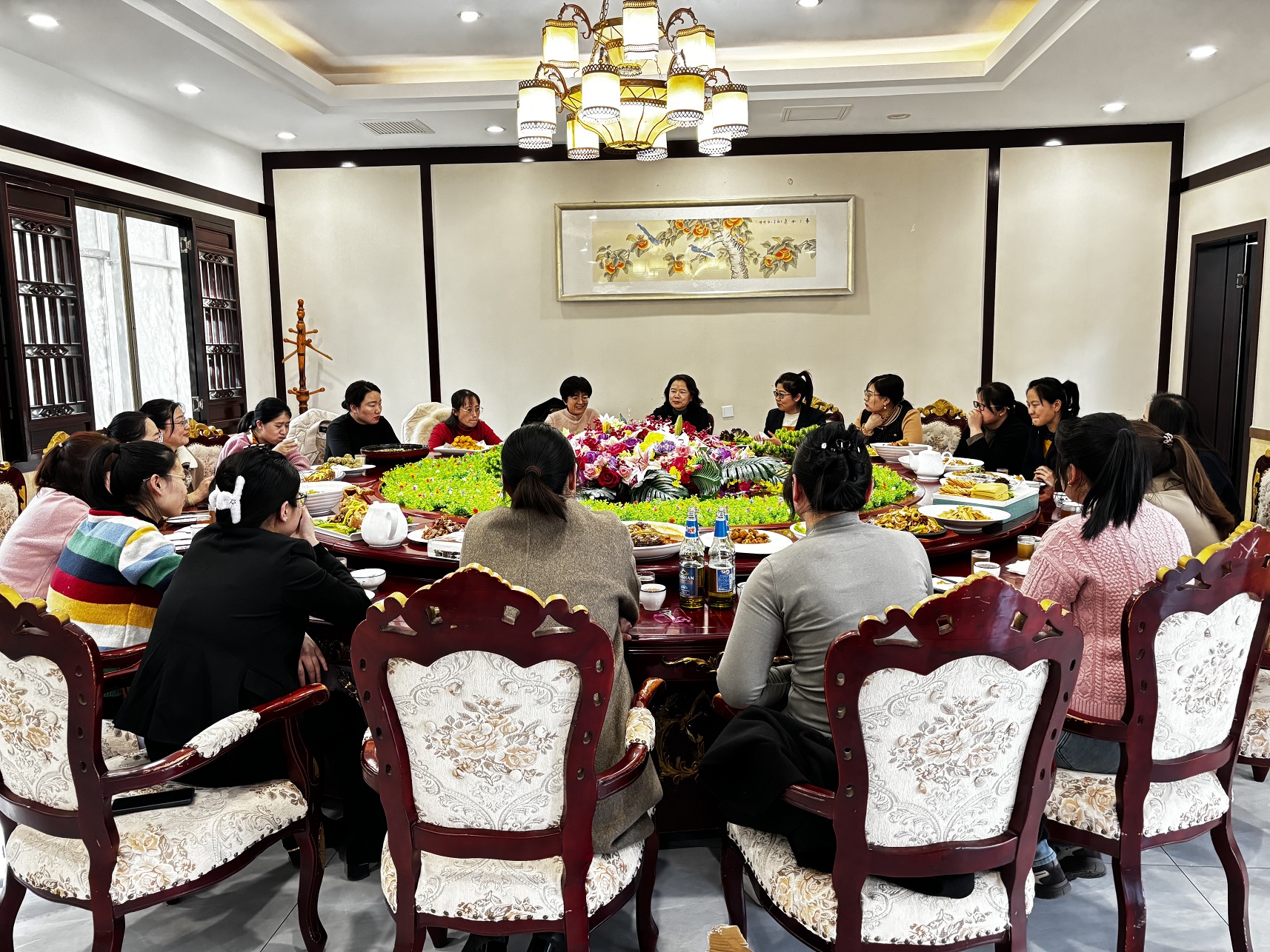 中午,公司還組織了聚餐活動(dòng)。各位女神舉杯共飲,歡聲笑語(yǔ)映襯出溫馨的氛圍。總經(jīng)理徐宏女士祝愿大家都能不斷提升自我,展現(xiàn)自我魅力,做自己的女王!